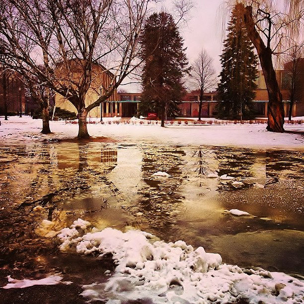 "I've never done anything like this before. I've rowed on rivers and lakes, but nothing in the middle of a university campus," he said. "[With] all the slush and ice in there right now it felt like rowing the Titanic."